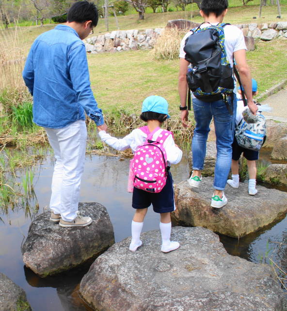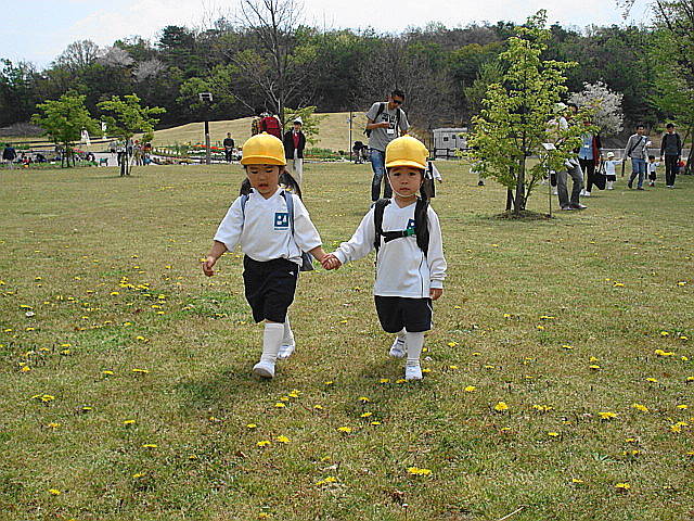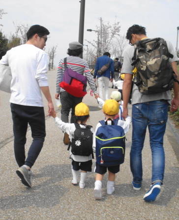 それでは、お友達を抜かさないように汽車ポッポになって歩きましょう! 1.2.1.2・・・