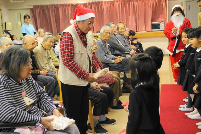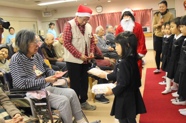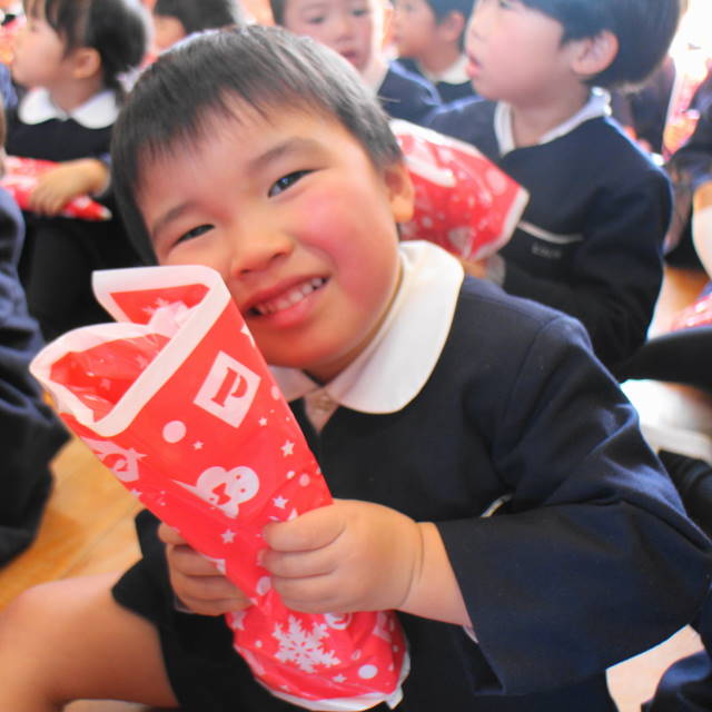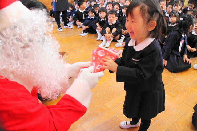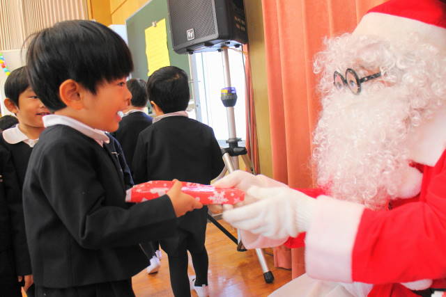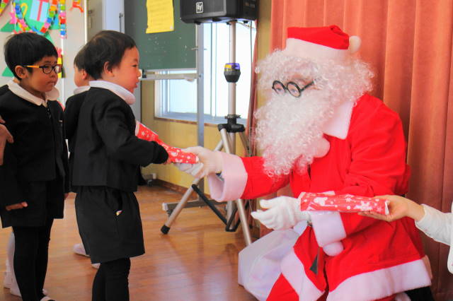 サンタさんが、一人一人にプレゼントを手渡してくれました。
