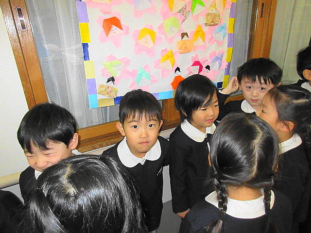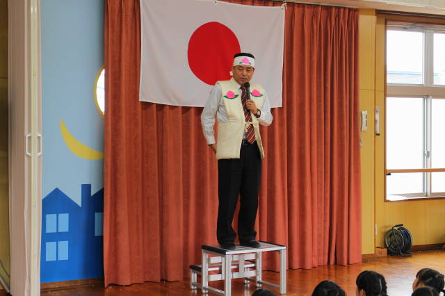 まず、はじめに朝のご挨拶をし、歌『春よこい』『小さな世界』をプレゼントしました。