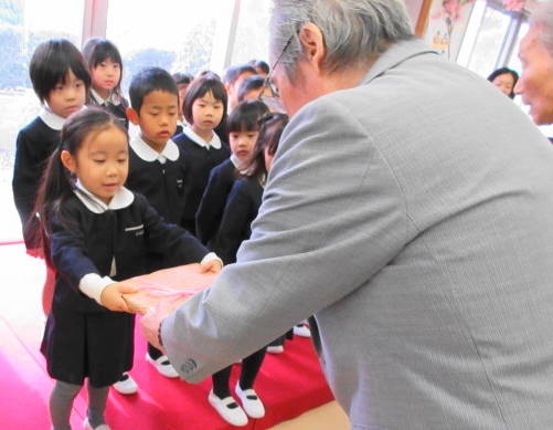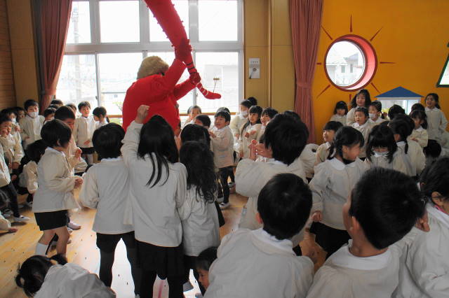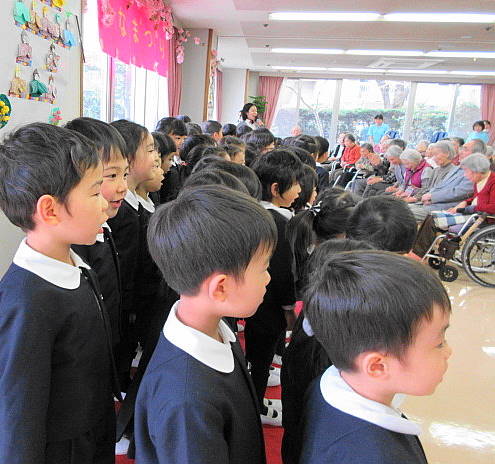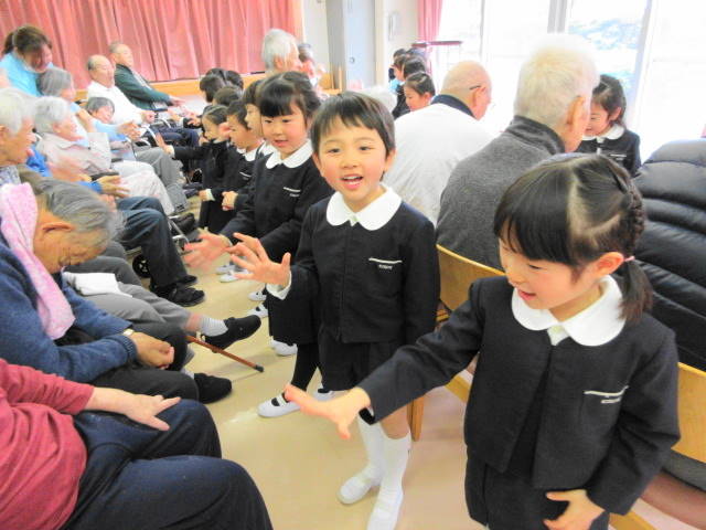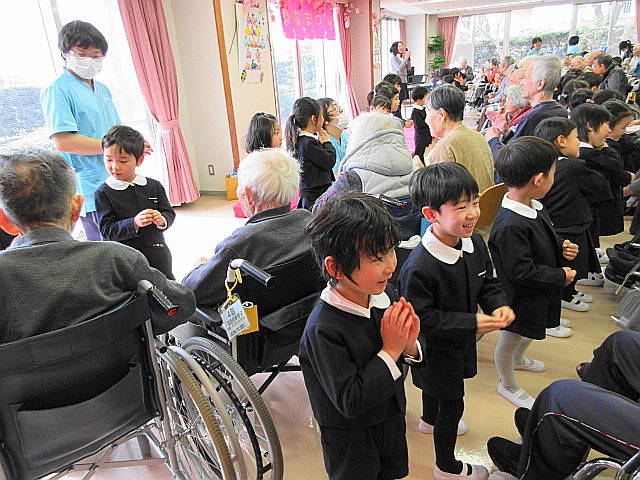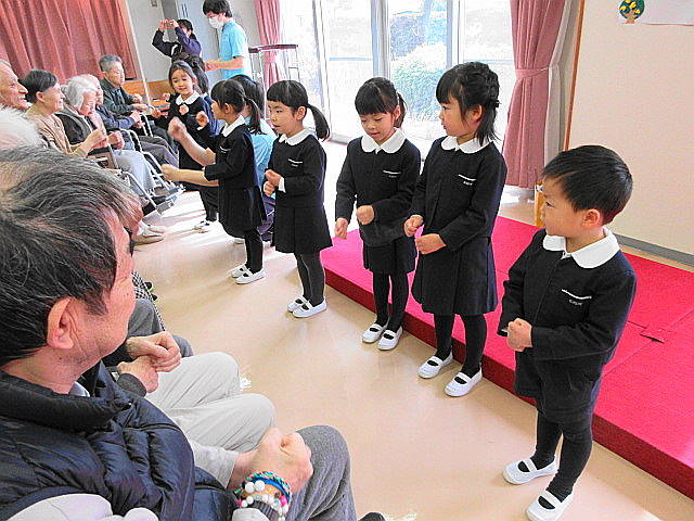 2月21日(水) 年中・赤組は、初めて老人保健施設『しおがま』へ遊びに行きました。