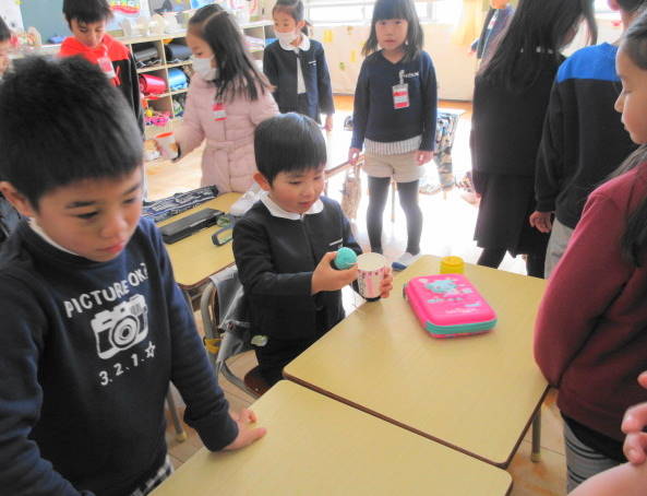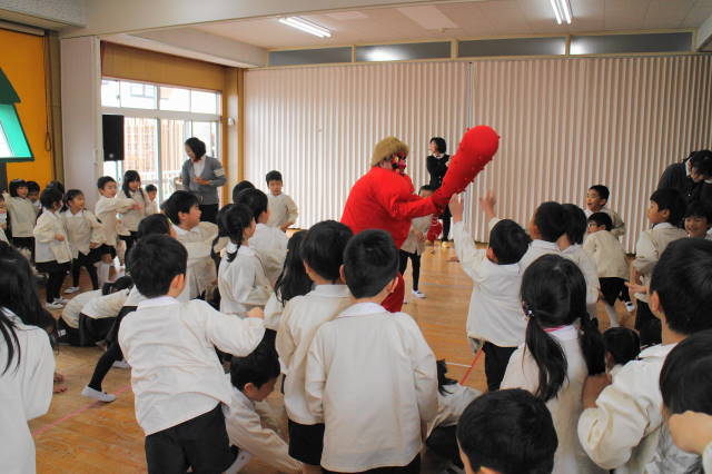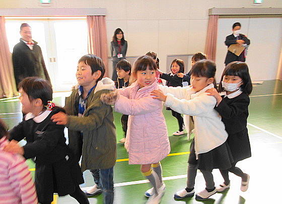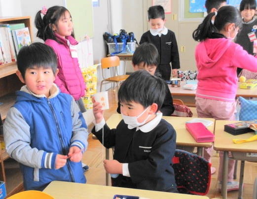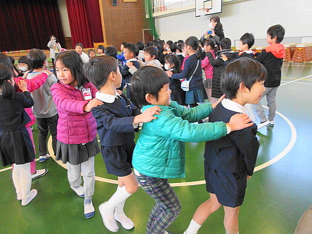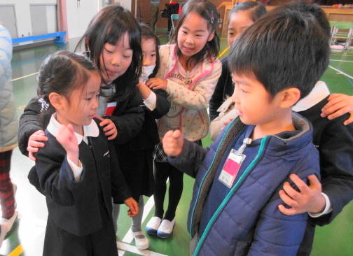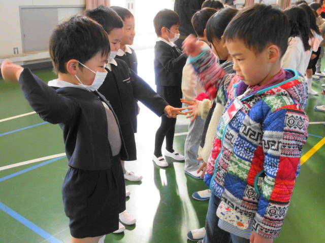 2月8日(木) 年長・青組は、大坪小学校の『一年生と仲良くなる会』に参加してきました。