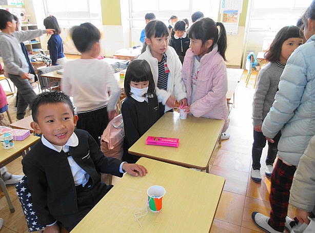 体育館に入ると、小学一年生のお兄さん、お姉さんたちがニコニコと迎えてくれました。