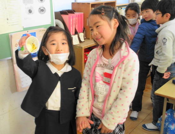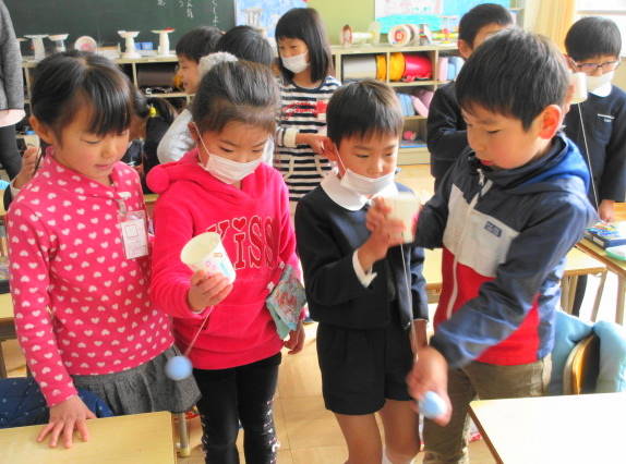 教室では、小学生から『けん玉』のプレゼントがありました。