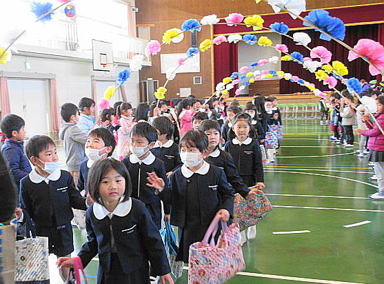 最後は、小学生がお花でアーチを作ってくれました。アーチをくぐってさようならー!!