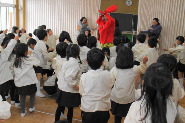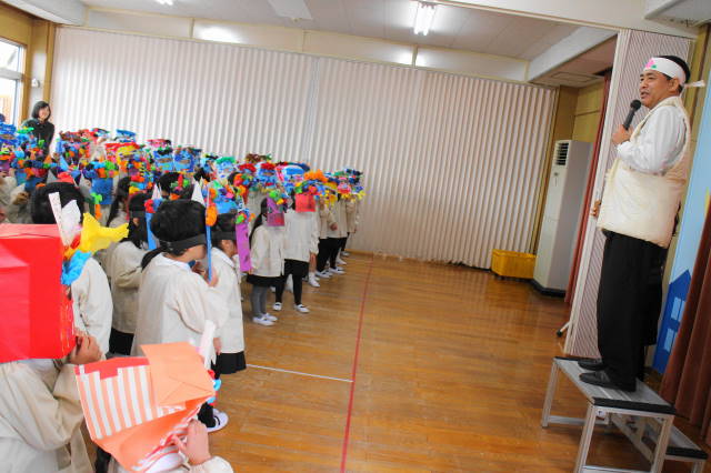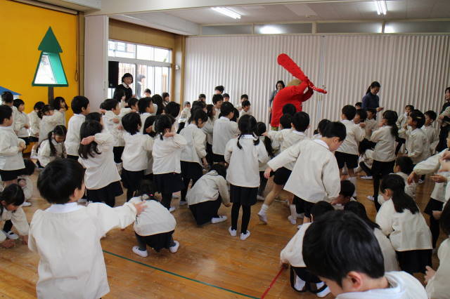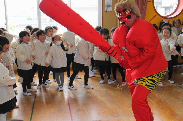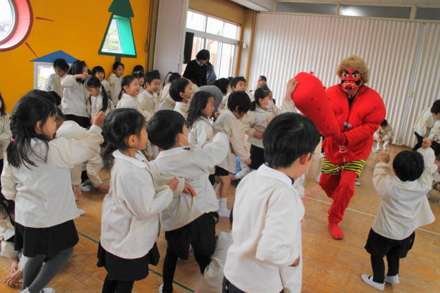 さぁ、みんなで豆を投げて悪い鬼をやっつけましょう!!!