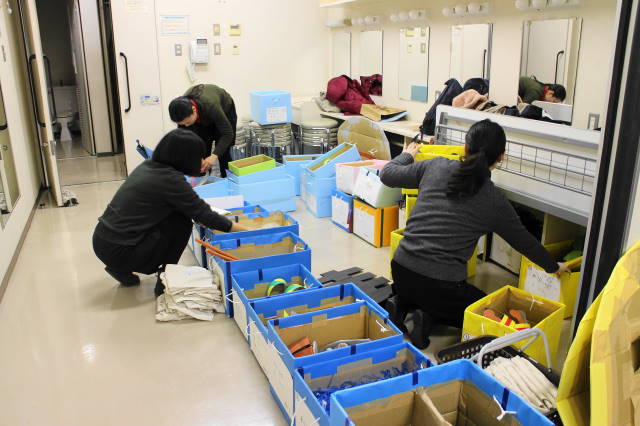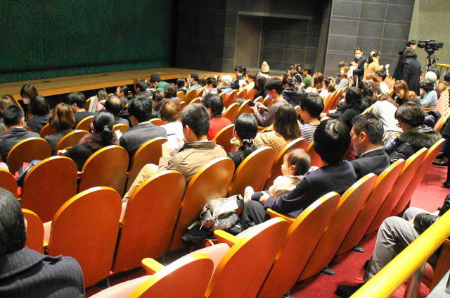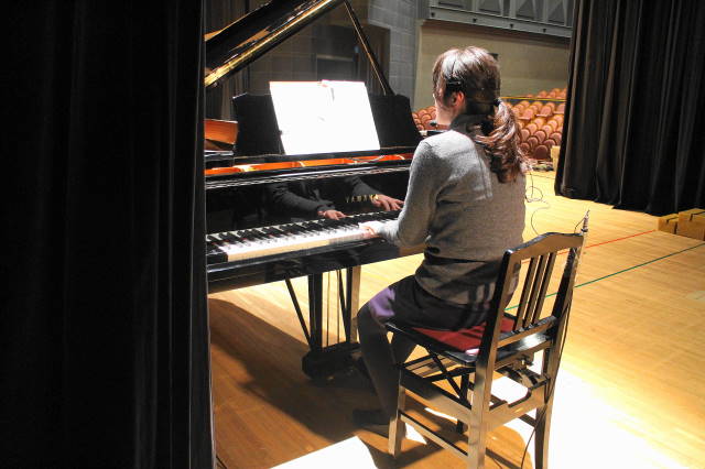 前日、夕方5時半から、会館にて小道具の搬入と会場準備が行なわれ、ピアノのマイクをセッティングしてから、先生方のピアノとナレーションの練習を行いました。