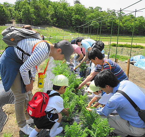 「今日はにんじんを掘ることができますよ!」特別に、にんじんを収穫させていただきました。