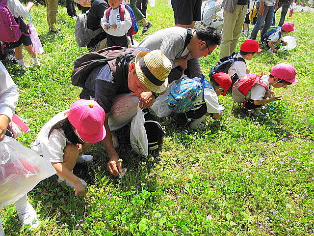 年中さんは、シロツメクサ摘みからスタートしました!
