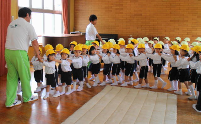まずは、元気よく体操の先生とごあいさつしましょう!