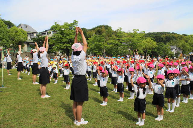 開会式では、園長先生のご挨拶と会長さんのお話をお聞きし、『第1ラジオ体操』を行ないました。