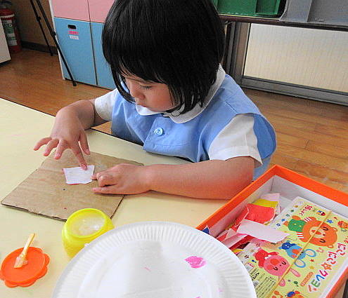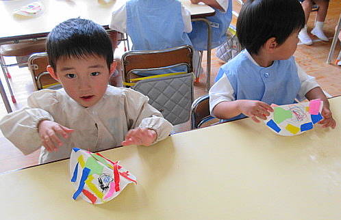 5月23日(水) 年長・青組が国旗カードを使っていろいろな遊びをしました。