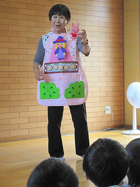さて、本日は、山村眞午さんという方が来てくださり、絵本や紙芝居の読み聞かせをして下さいました。