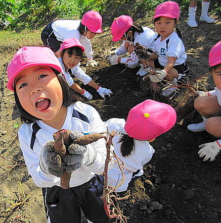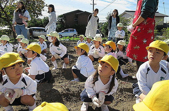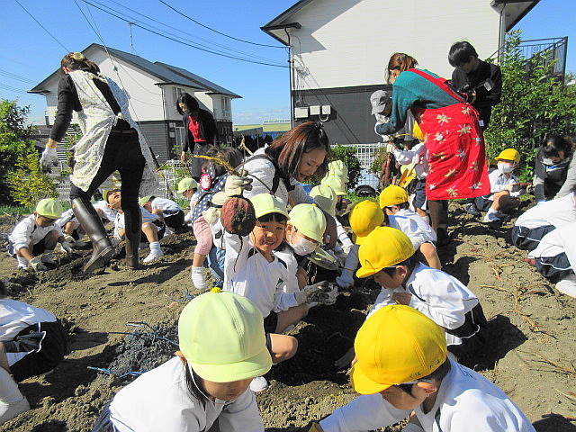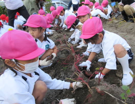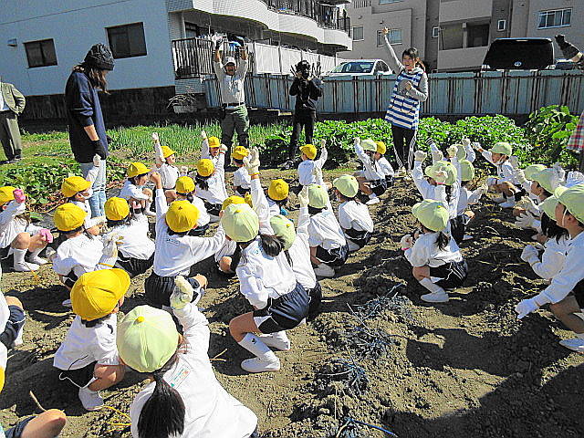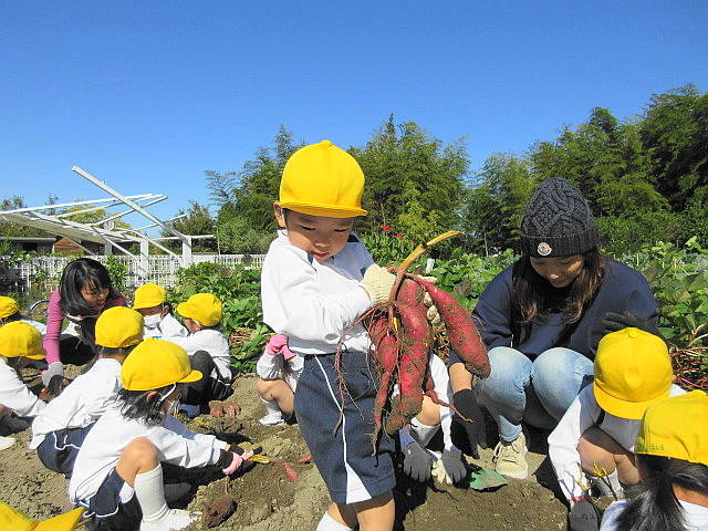 「大きいお芋かな?小さいのかな?」「ミミズとかモグラいるかな?」と、いつも歌っている『でぶいもちゃんちびいもちゃん』の歌詞を思い描いては、お芋堀りを楽しみにしている様子。