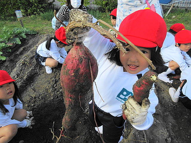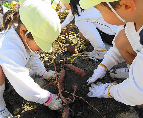 見つけた見つけた!土の中からお芋が出て来ましたよ!「みてー!おいもー!!」「ほらー!!」