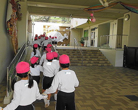 年長さんが年少さんの手を取り、楽しそうに歩く姿、とても微笑ましいですね♪