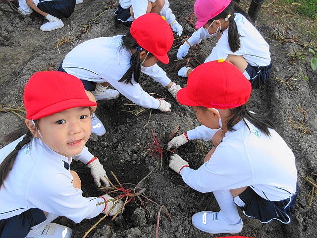 今年も、姉妹園鳴海ヶ丘幼稚園『なるなる畑』へ、お芋掘りに出かけました。