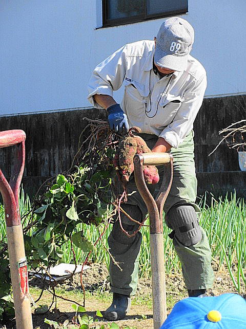 一生懸命掘って行くと、地面からいろんな形のお芋が顔を出します。