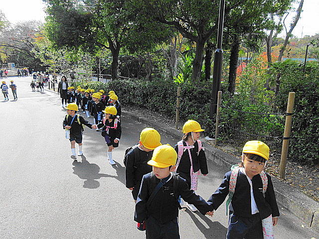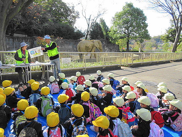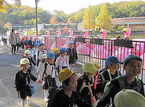 バスに乗って来るおともだちもいれば、動物園まで頑張って歩いて来るおともだちもいます。