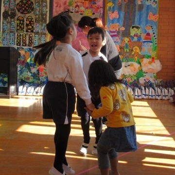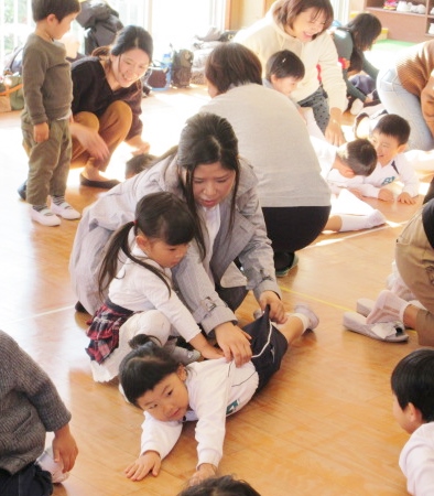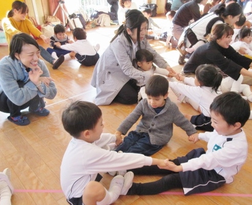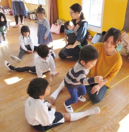 短い時間でしたが、幼稚園のお友達と体も心もふれあい、楽しい時間を過ごせました・・・