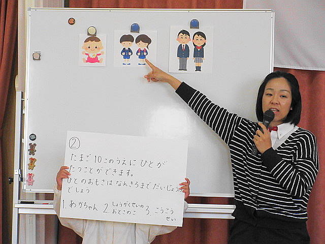 各クラスを参観後、ホールで、幼稚園紹介ビデオを見て頂き、質疑応答の時間を設けました。
