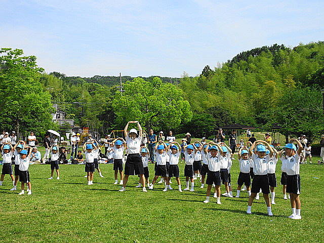 親子で整列をし、「zooといっしょ 木っといっしょ東山」を踊りました。