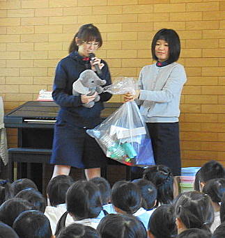 ホールに集まり各学年の発表を聞きました。