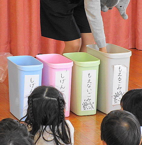 そこで先生がみんなにも聞きながらぞうさんと一緒に分別をしました。