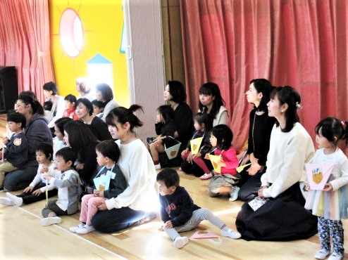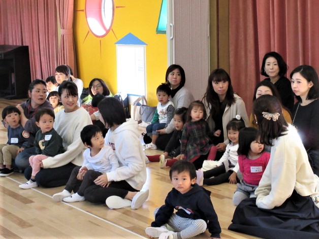 今日は、来年入園する未入園児のお友達が、幼稚園に遊びに来てくれました。親子で、参加です!「何が始まるかワクワクワク・・・」