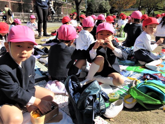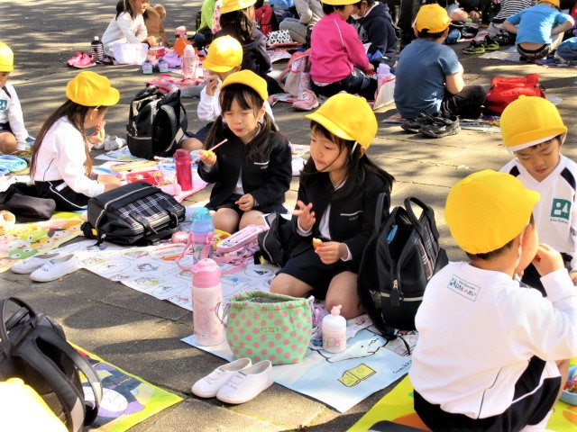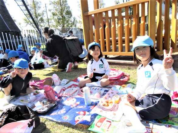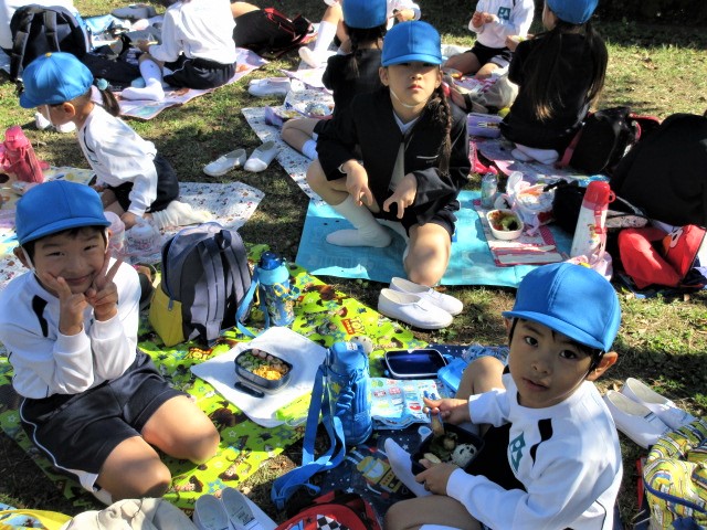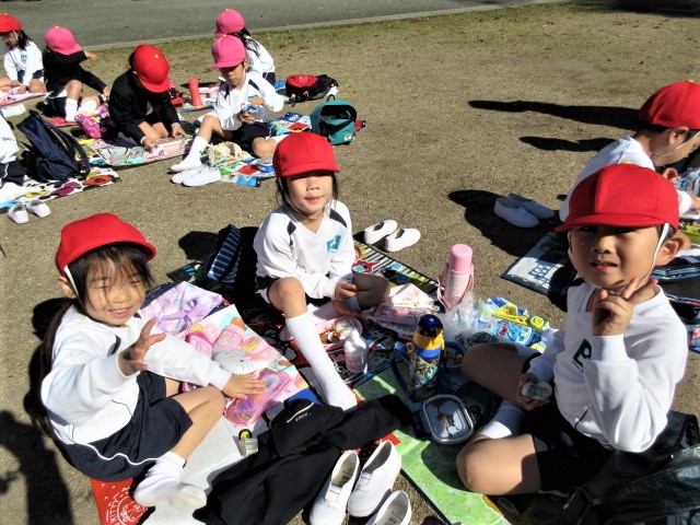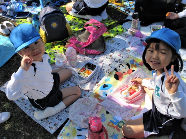 広い広場で、お友達と食べるお弁当は、美味しいですね!