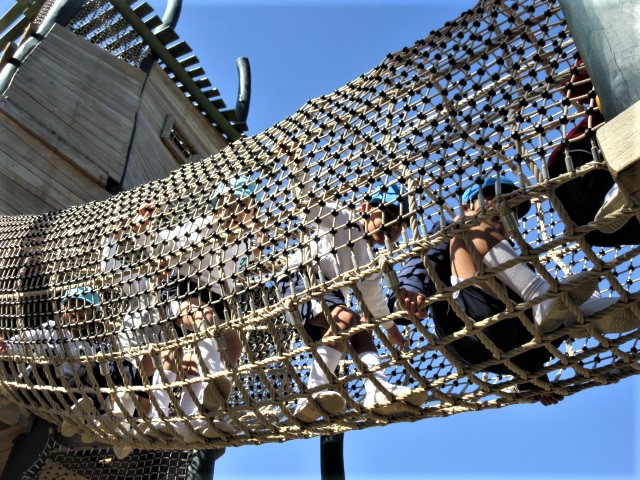 ドイツからやってきたという大きな遊具「リーチフォーザスカイ」