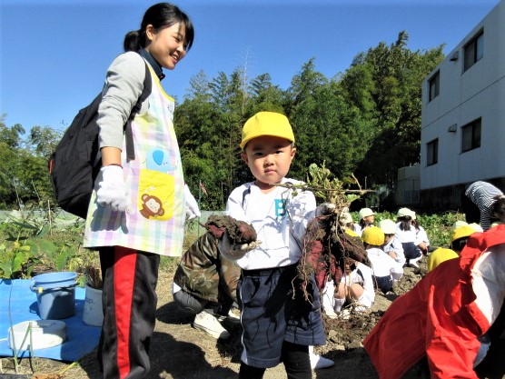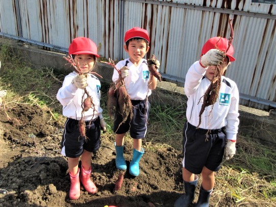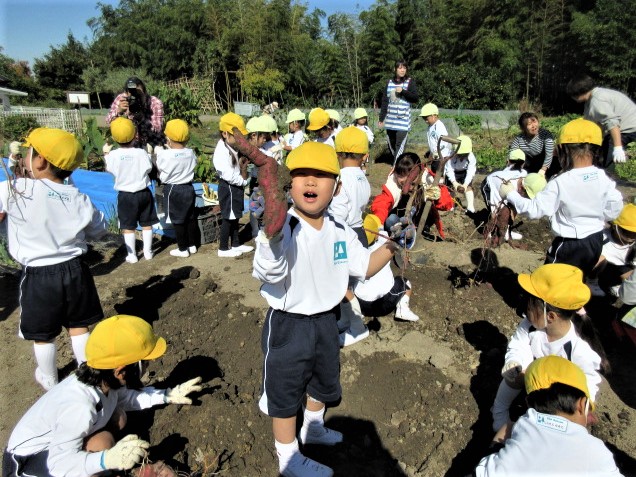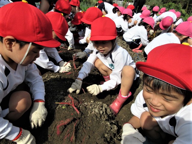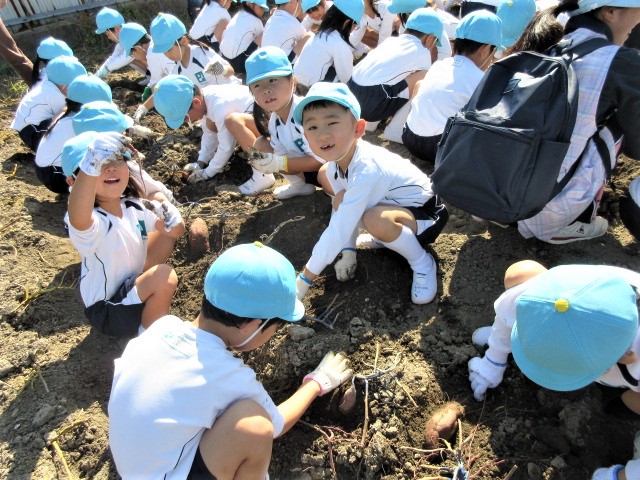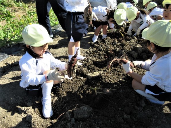 3学年が3日間に分かれて、鳴海ヶ丘幼稚園のなるなる畑にお芋掘りに行きました。