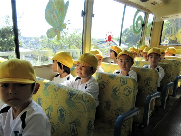 子どもたちは楽しみで楽しみでバスの中でもウキウキワクワク!