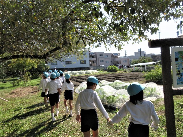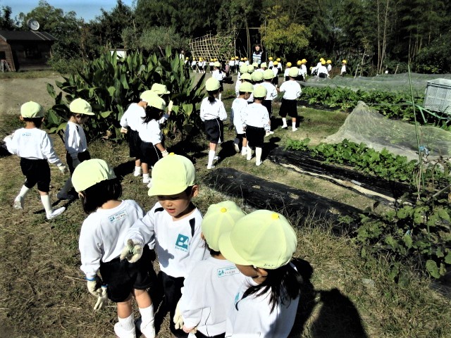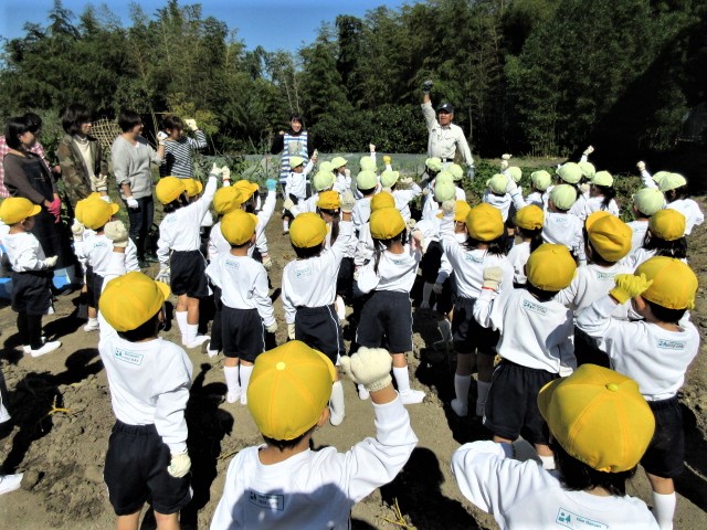 畑をお借りした鳴海ヶ丘幼稚園の皆さん、