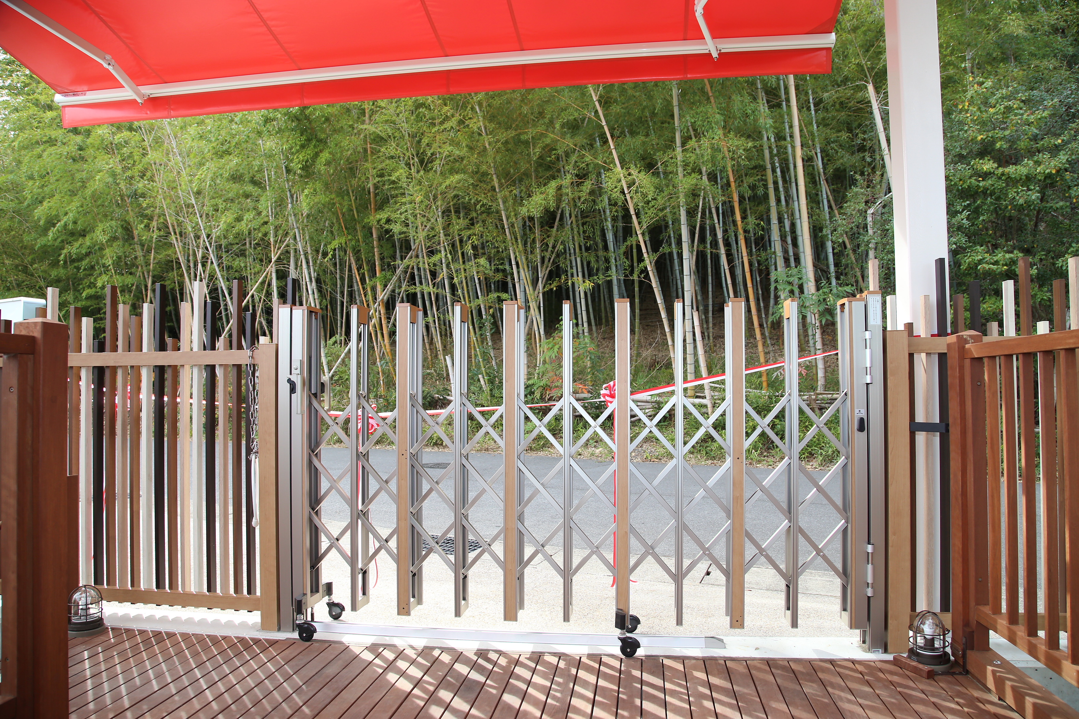 バス発着所が、広くとられ、乗降する門扉も広くなりました。又、雨・日差し除けに朱色のオーニングも素敵です。