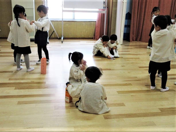 年少・年中・年長組が、1つのグループになるようにわかれ、