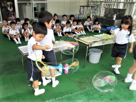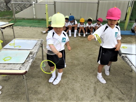 7月27日(月)、28日(火)は「シャボン玉」をして遊びました。
