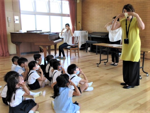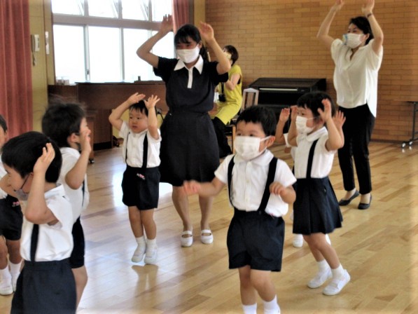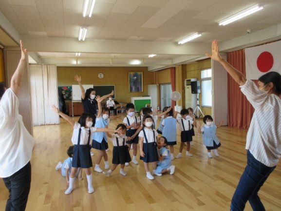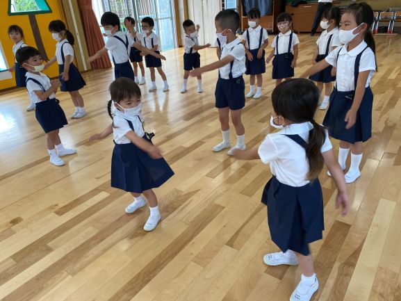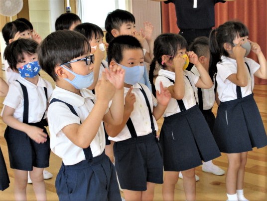 今回は、飛沫に配慮し、吹かずに、手や体の動きだけでシャボン玉を楽しみました。