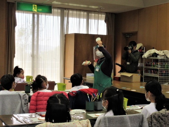 最後に、園長先生よりお話をいただき、完成したコースターをもらって、