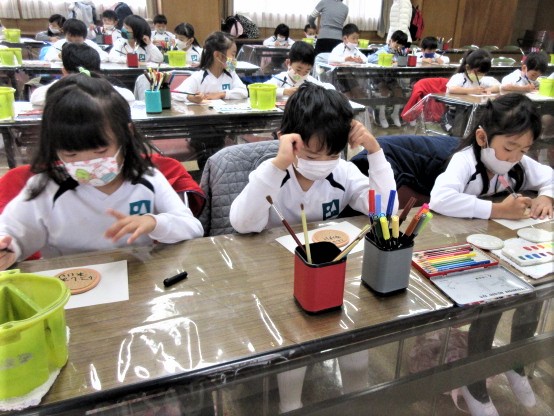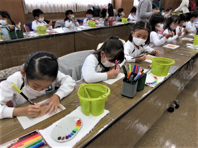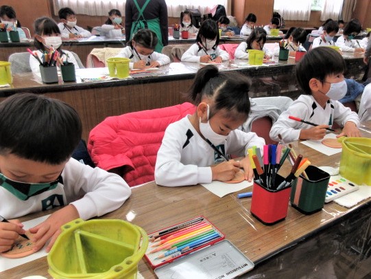 絵の具・サインペン・色鉛筆などを使って好きな絵を自由に描いていきます。