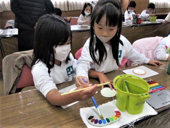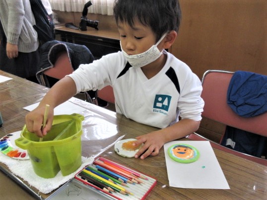 絵の具をつけて・・・ 「何描こうかなーー」考え中・・・