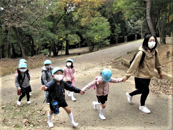 青組さん(年長)は、黄組さん(年少)と手をつなぎ一緒に歩いてくれました。