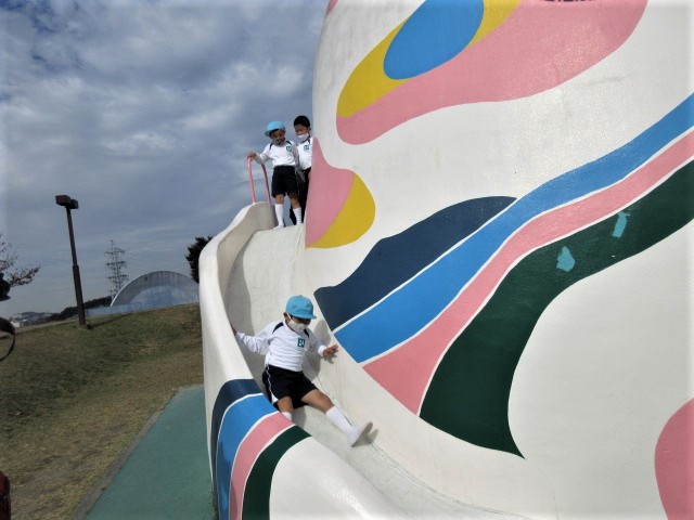 お弁当の時間が終わると、目の前には、大きな遊具が・・