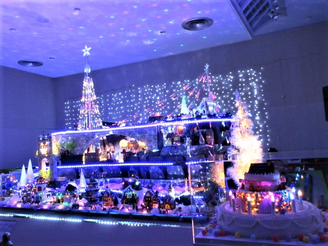 『巨大ジオラマと鉄道模型の世界』は、夜のイルミネーションのようにきれいでした!ディズニーのメロディーが流れる中、一足早いクリスマス気分を味わいました。