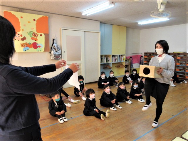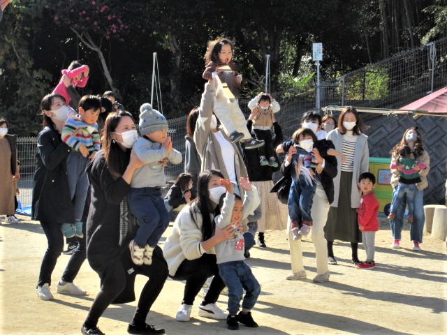 「はやく!はやく!」「おとさないようにねー」「ハイ、どうぞ!」