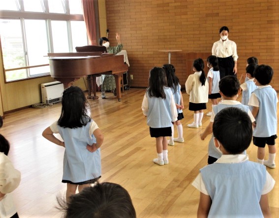 講師の先生 豊田かおり先生に園内歌唱指導をしていただいています。