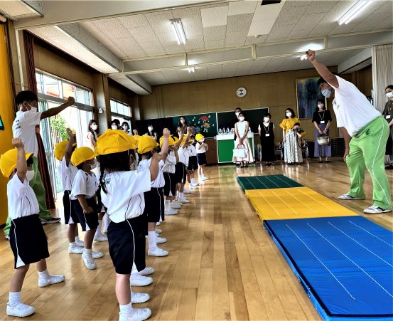 次は、体操の先生と一緒に体育指導です!