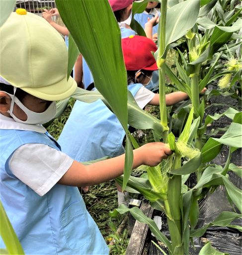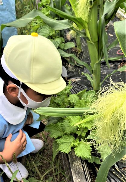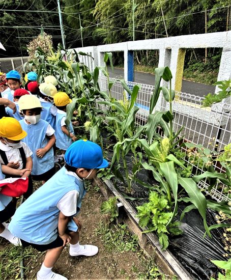 運動場の上の畑では・・・《トウモロコシ》が大きくなっていました!