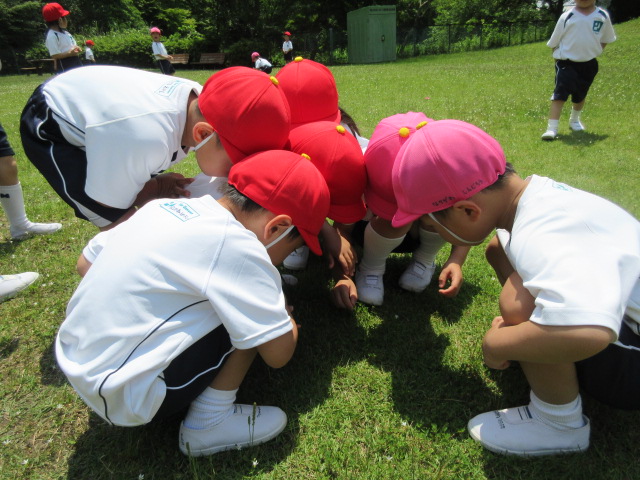 芝生の中から、虫みつけ・・・あっ、小さいかわいいお花も見つけました!