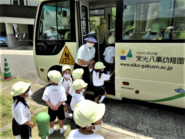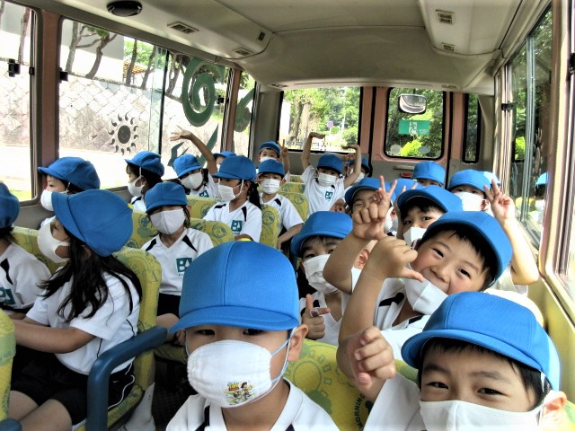今日はとっても良い天気。みんなワクワクしながら園バスに乗って、出発です!!