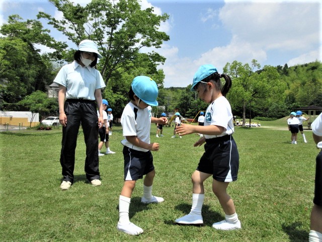 年少さんは、年長さんと2人組で、サポートしてもらいながら・・・上手!上手!!